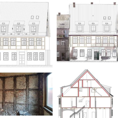 Das Haus ist bereits komplett entkernt, der Denkmalschutz und die Baubehörde unterstützen das Vorhaben, die Brandschutz- und Holzgutachten liegen vor. Die Baugenehmigung ist erteilt.